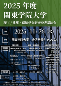 11月26日、理工/建築・環境学会の開催に合わせて、材料・表面工学研究部会を開催いたします。本学会では、午前に7件の学生発表、午後に2件の特別講演を予定しております。 ぜひ、ご出席賜りますようお願い申し上げます。 以下、 […]